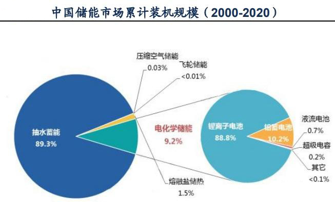 光伏发电、风力发电等新能源发电将成为未来新能源的重点发展对象。但要克服风能和光伏的间歇性和波动性,整个电力系统需要转型。储能技术是改造中的一项关键技术。国家“十四五”规划和《2030年前碳达峰行动计划》也明确规定发展新型储能方式。从2020年的投资来看,锂电池在新能源存储方式中占比近90%。
