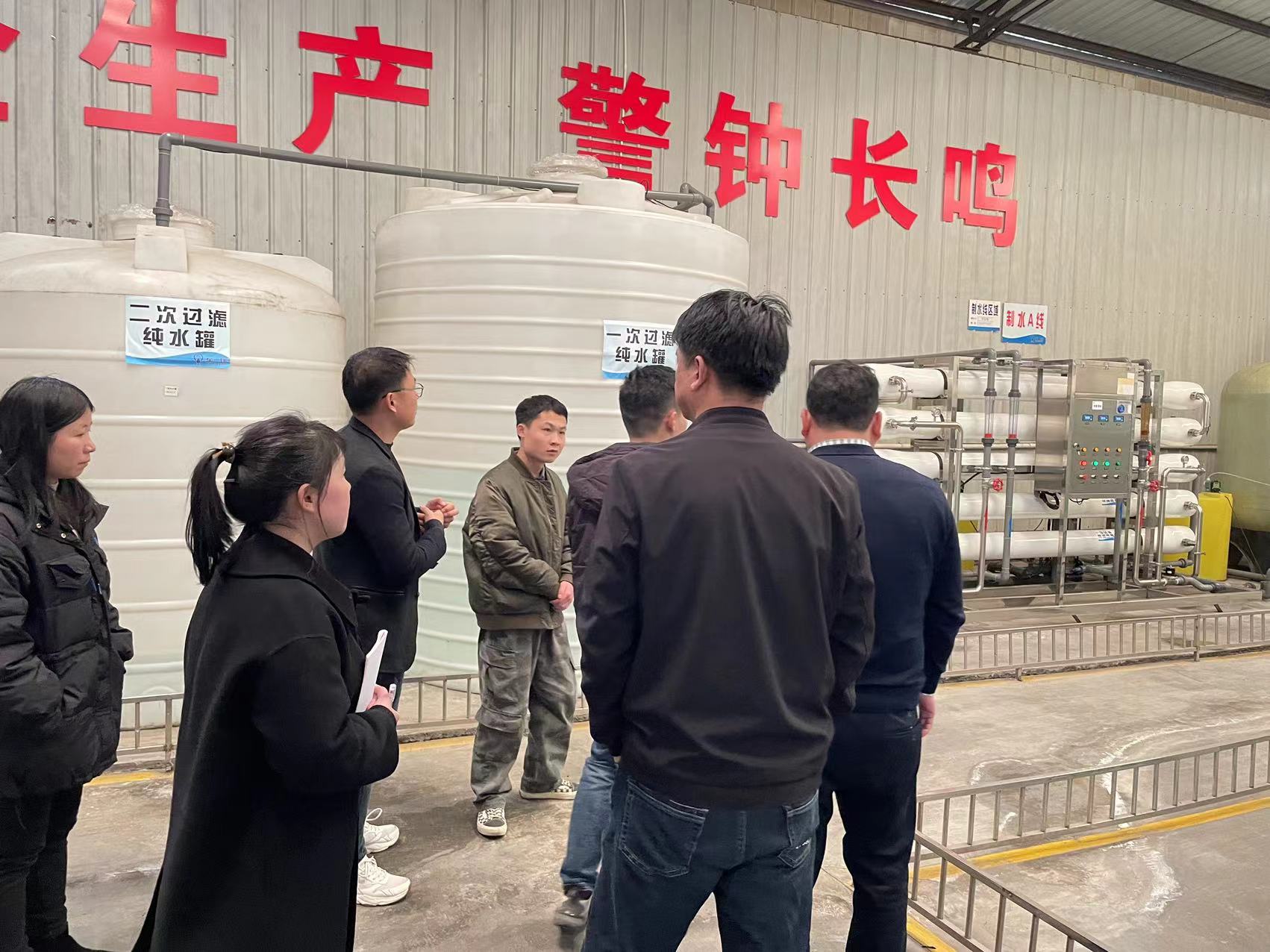 高澜领导一行莅临乐天使视察了解公司生产情况,及参观湖南乐天使的去离子水生产设备、自动灌装设备、实验室等生产研发检测设备。